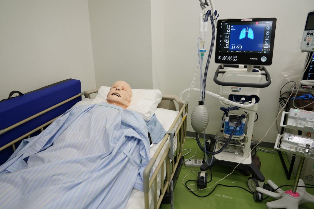 森口:一方「スタッフトレーニング」では「看護師特定行為研修」に取り組み、手術室での術後管理や麻酔管理における医療行為、ICUでの人工呼吸装着患者さんへの医療行為などを担える特定看護師の育成を行っています。 ICUは高度医療機器を必要とする患者さんたちを、社会復帰させるための現場です。容態の悪化や急変につながる兆候を先回りしてキャッチアップできるようになるために、シミュレーションを中心としたトレーニングに取り組んでいただいています。